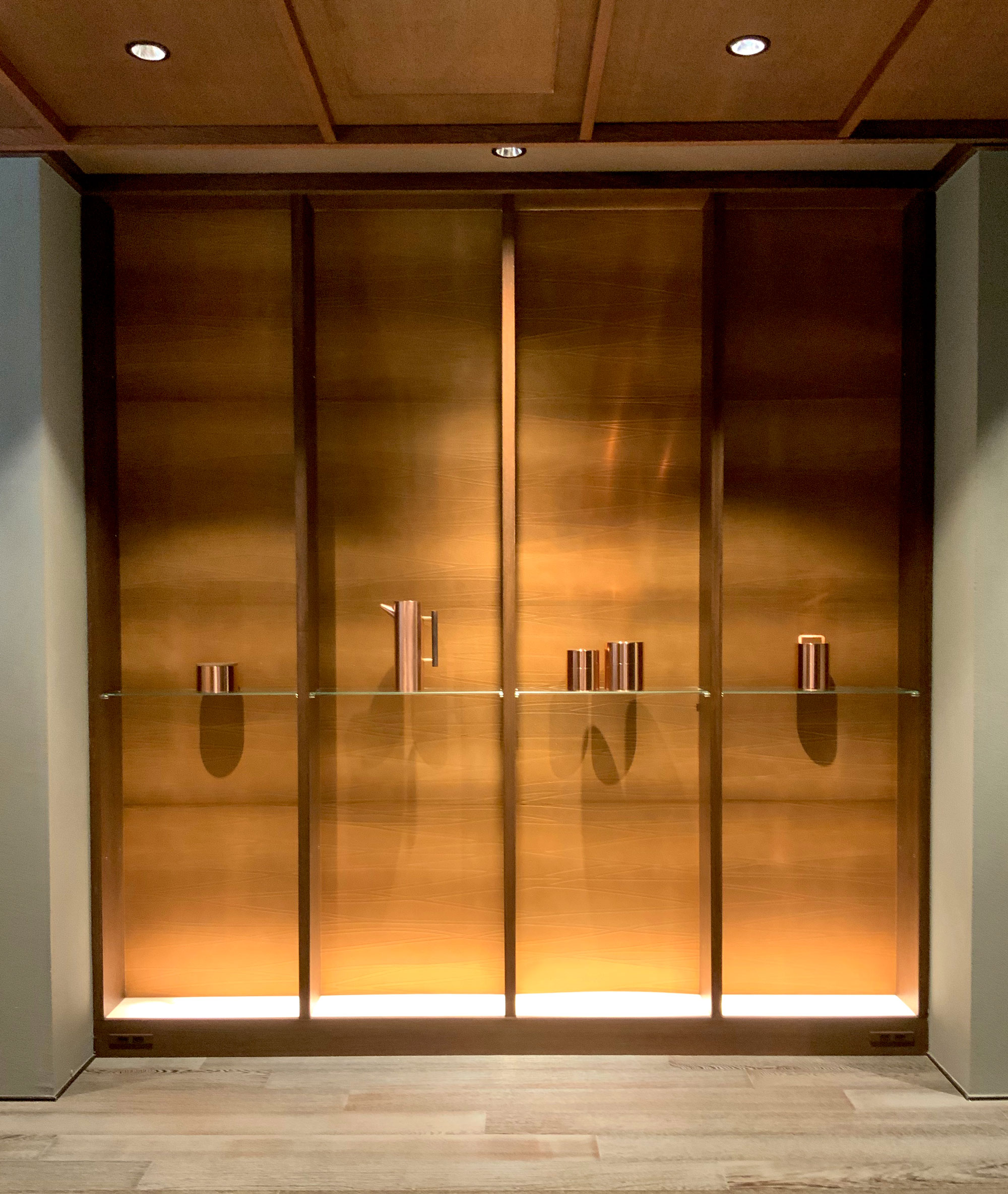 京都東山、寧々の道に佇む老舗旅館をリノベートしたハイエンド向け分散型ホテル。主体のVMG(バリューマネジメント株式会社)が手がける東山、鴨川エリアに点在する4軒のレストランをゆるりと回ることで、宿泊客は京都の魅力を存分に感じられる。ラウンジはゆったりとしたソファとアイコンである孔雀のクッションを合わせて京都らしいラグジュアリーな印象を演出。各部屋のディスプレイは京都にゆかりのある作家、作品などを中心に、廊下に京唐紙のアート、部屋内に西陣の引き箔技法を用いて和紙をシルクに折り込んだタペストリー、ロビーには日本で一番古い歴史を持つ手作りの茶筒メーカー開化堂の銅製品を配置し、京都の伝統工芸をより身近に体感していただくことで満足度の高い空間を目指した。