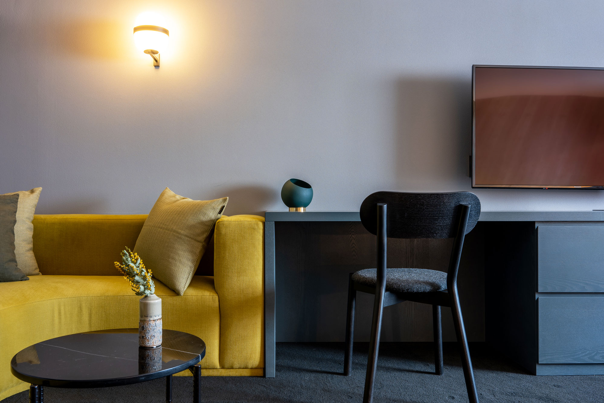今回は北の湊町ということもあって北欧のインテリアを意識し、各部屋毎にテーマカラーを決めたインテリアで構成されている。ディスプレイも北欧のデザインを中心に各部屋毎に合わせて配した。