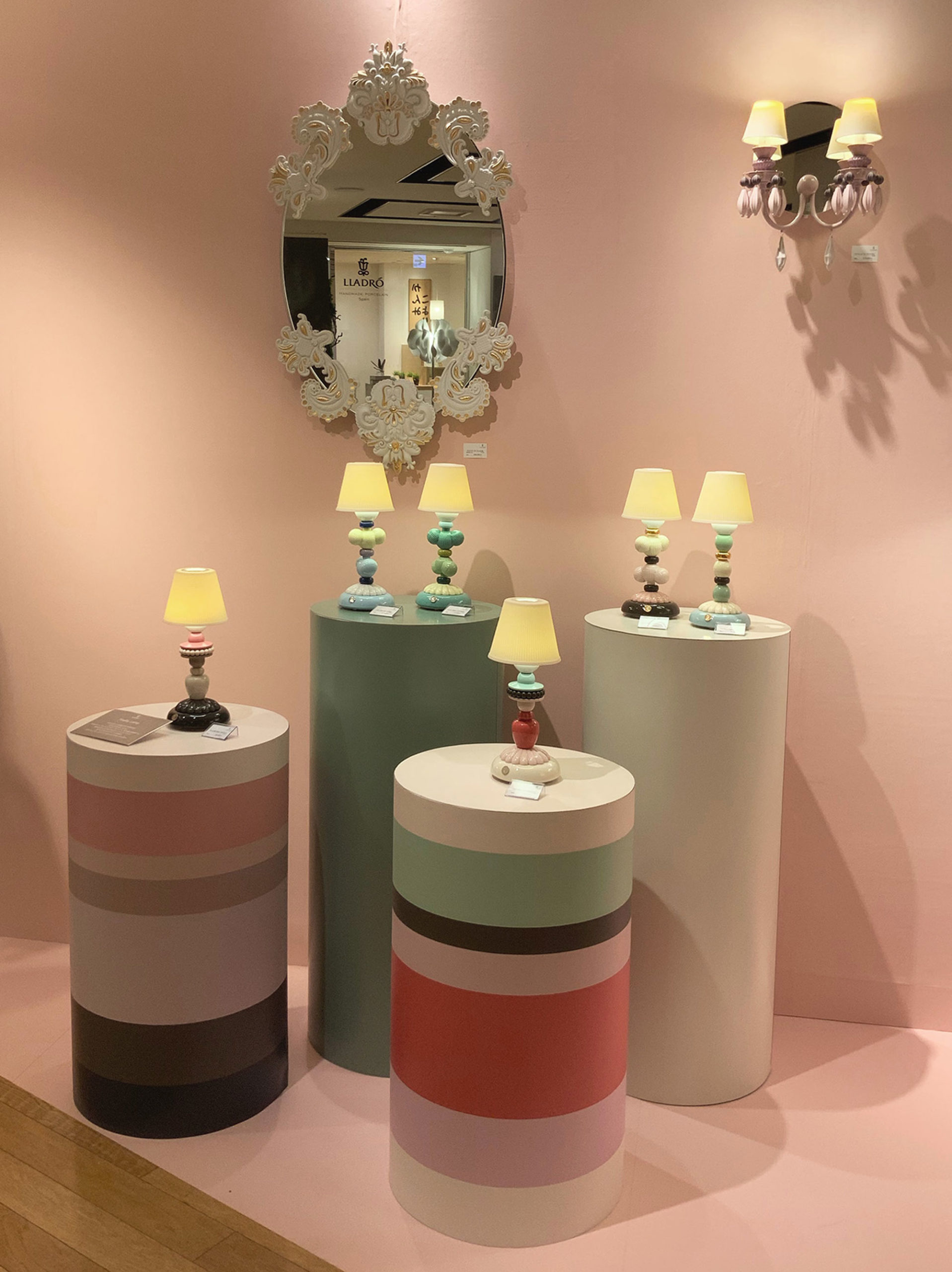 2021年コロナ禍真っ只中。いかに楽しくステイホームを過ごすかは人々の関心ごとの一つ。ともすれば退屈ないつもの風景、そこに新しい風を吹き込むようなパワフルでアーティスティックなリヤドロのポーセリン達。その溢れ出すパワーがインテリアにも拡散し、心踊る日常を提案するというコンセプトを草案。作品からインスパイアされたカラーやデザインの什器を織り交ぜ、作品のパワーが会場の人々に伝染するような空間を試みた。