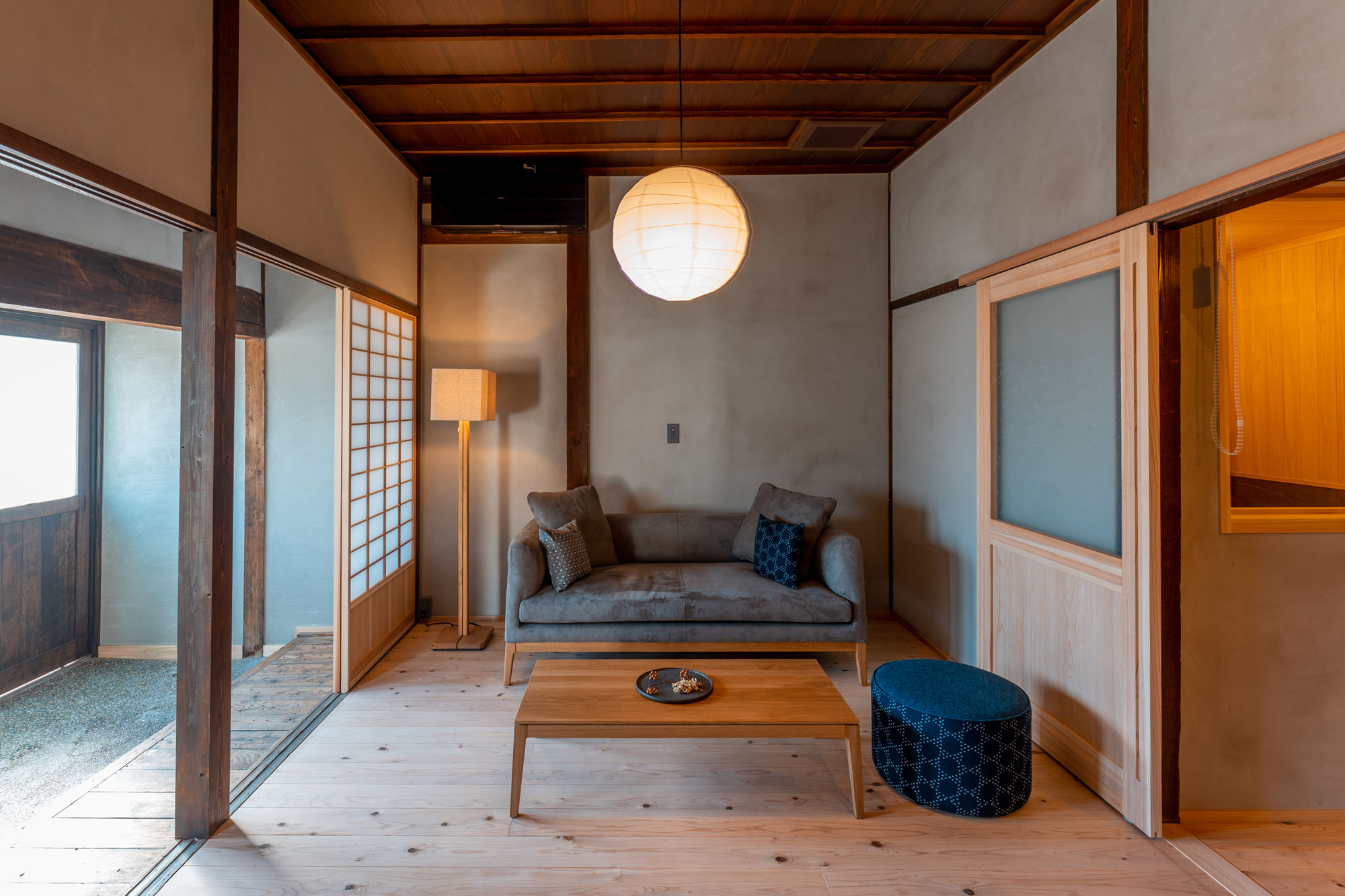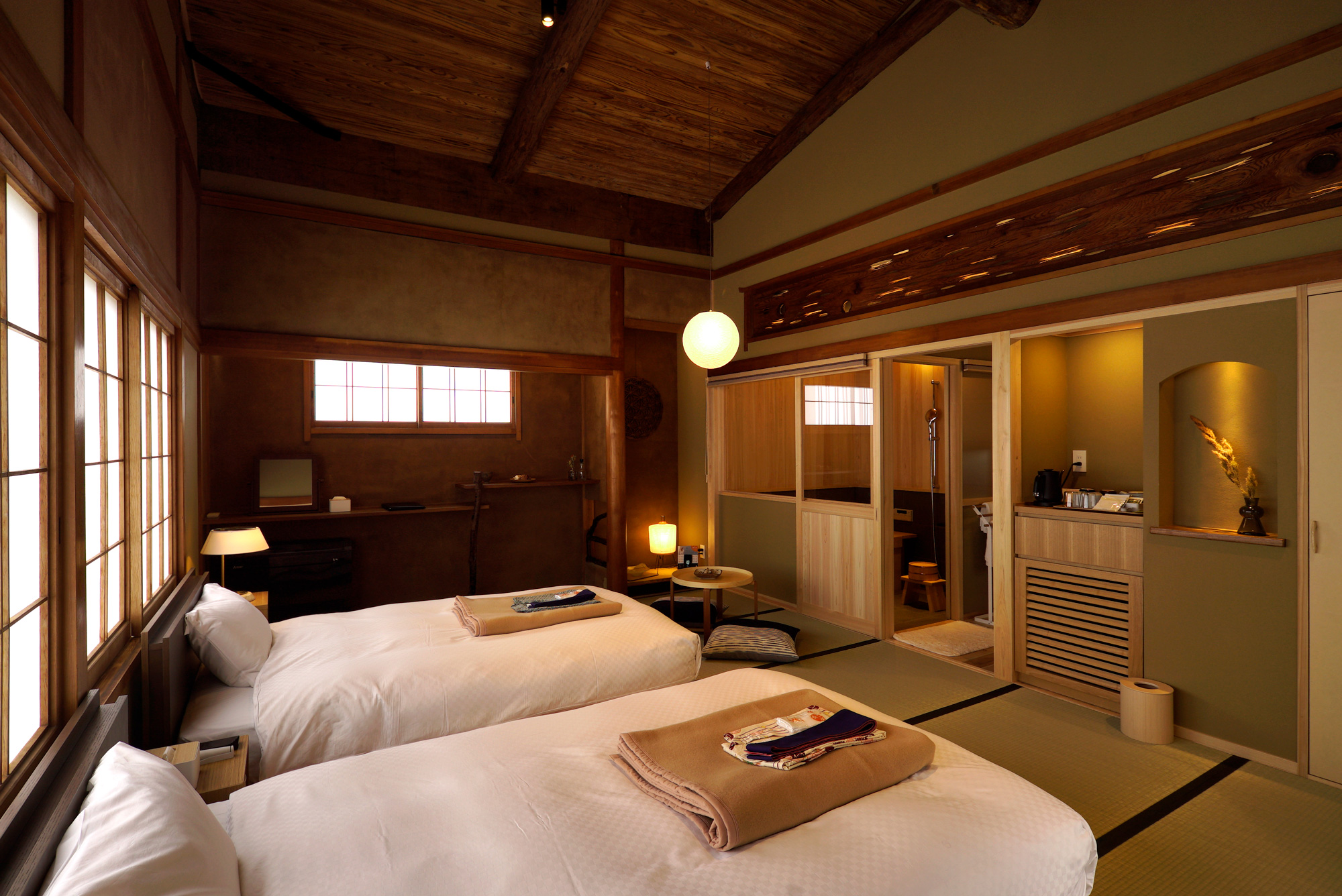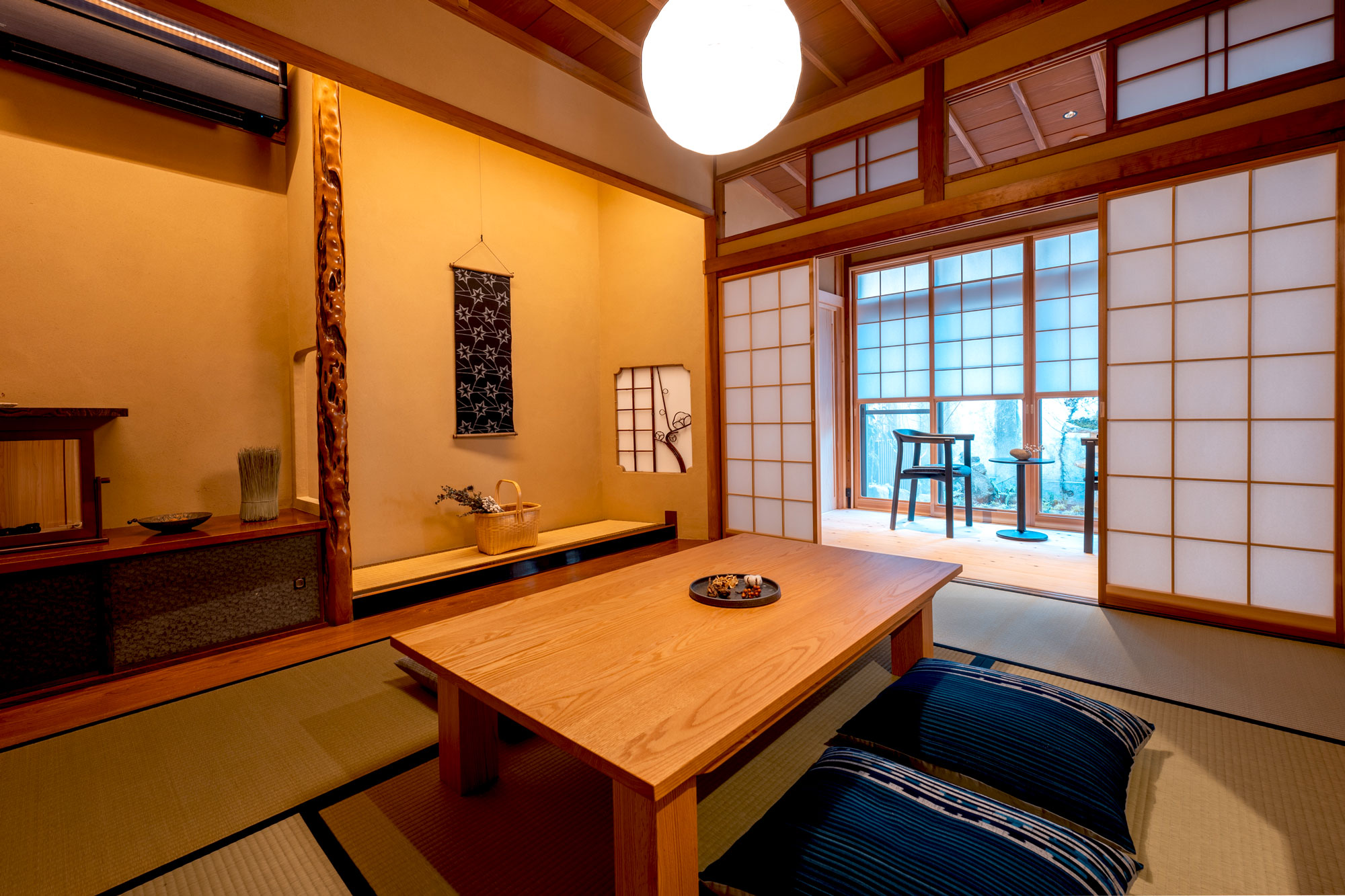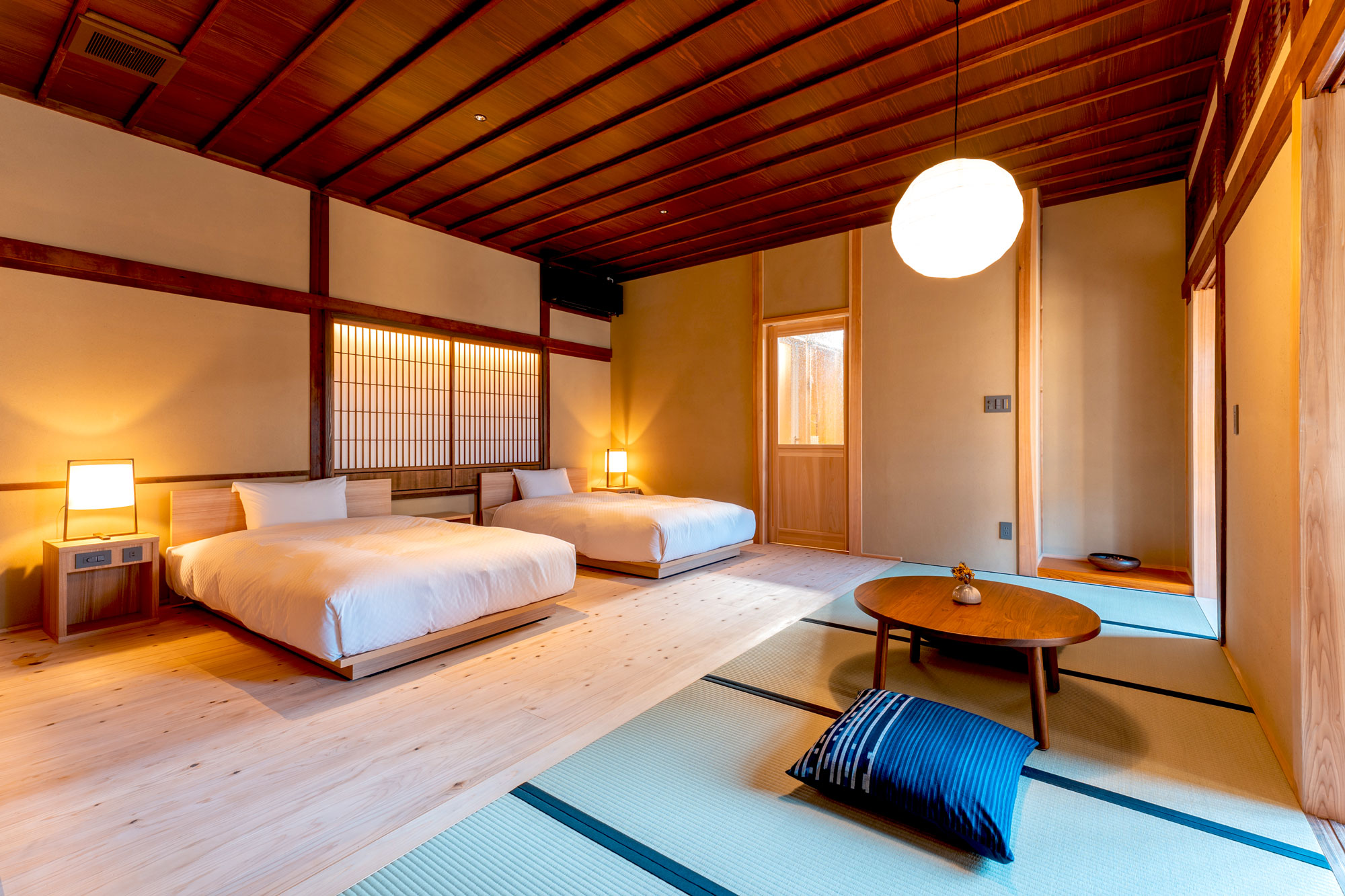 太宰府天満宮周辺を主とした小規模分散型ホテル。江戸時代から明治初期、三代に渡って絵師として活躍した吉嗣家の住居であった古香書屋を母屋としてレストランと付属の宿泊棟に。また周辺で長年大切に受け継がれてきた古民家群を宿泊施設としてリノベート。大川の家具を中心に、福岡のみならず九州全土にゆかりのある作家や工芸品を部屋内に配置。各部屋には久留米絣で作ったオリジナルの座布団をセット。智と文化の神様として崇められた太宰府に因んだアート性のあるインテリアを提案している。